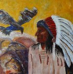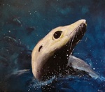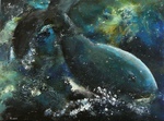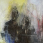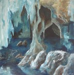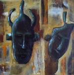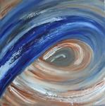 2007acryl op doek, met reliëf d.m.v.tissue in gesso. 50x50x2. hoofdkleur is pruisisch blauw